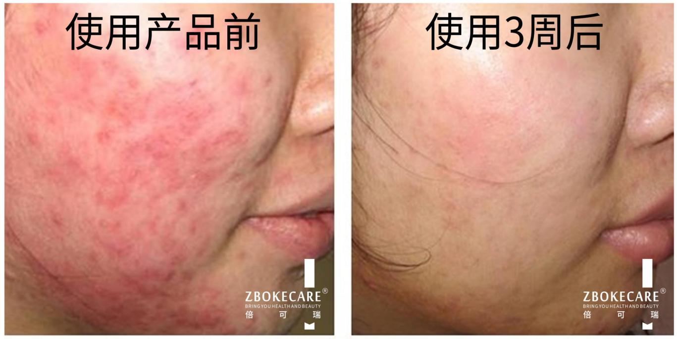 使用后狀態(tài):使用3周后,泛紅痘印消退,凹凸痕跡修復(fù),臉頰變光滑、細(xì)膩,修復(fù)效果明顯