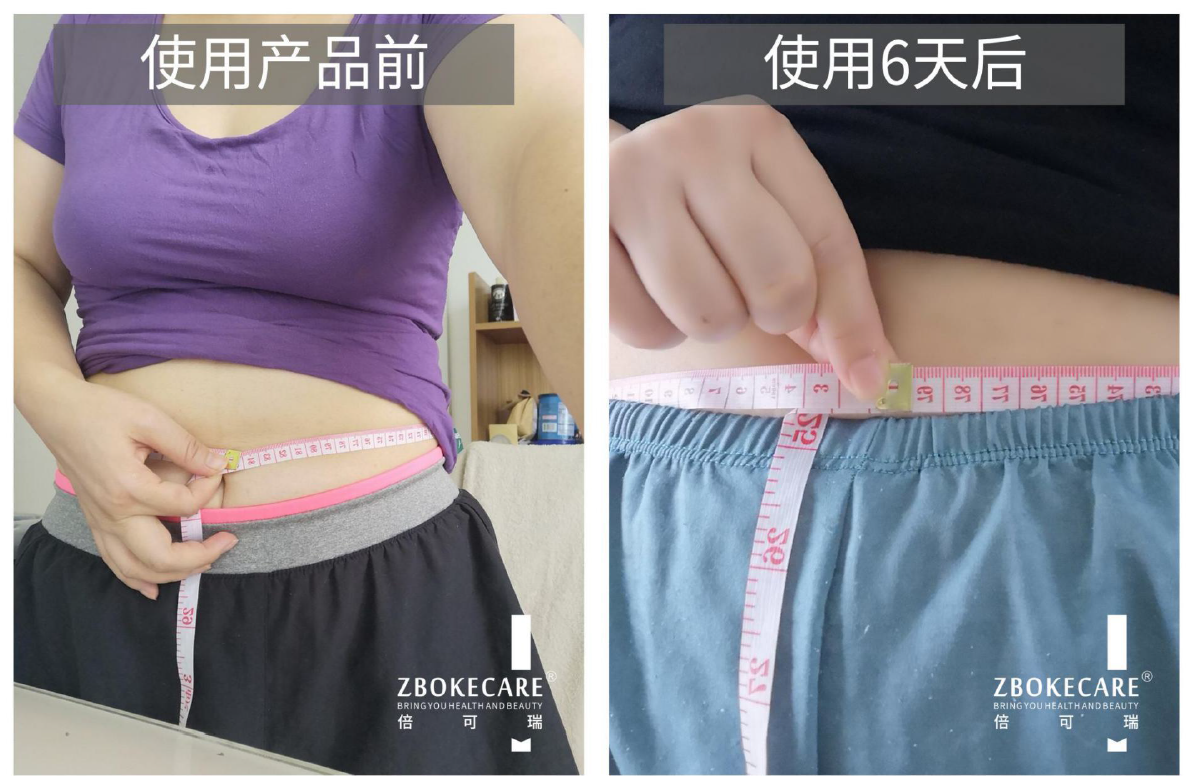 使用后:使用產(chǎn)品6天后,腹部皮膚變緊實(shí)、收緊,腰圍測量79公分,塑形6公分。