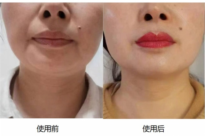 使用后狀態(tài):15天使用了產(chǎn)品2瓶,法令紋淡化,下頜線清晰、皮膚變緊致,更顯年輕。