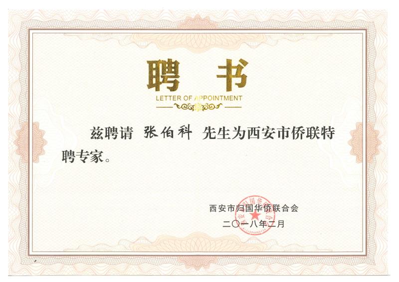 西安市歸國華僑聯(lián)合會特聘專家