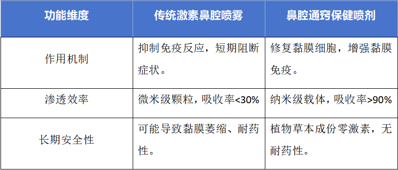 傳統(tǒng)鼻腔噴霧的分子粒徑多在微米級(jí),難以穿透致密的鼻黏膜屏障,導(dǎo)致吸收率不足30%,大量藥物殘留在鼻腔前端或被吞咽代謝。更嚴(yán)重的是,長(zhǎng)期使用激素可能引發(fā)鼻出血、黏膜萎縮等副作用。