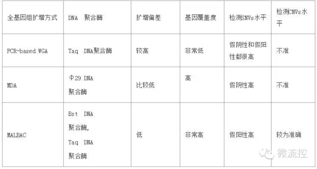 表1:三種類型的全基因組擴(kuò)增方式比較