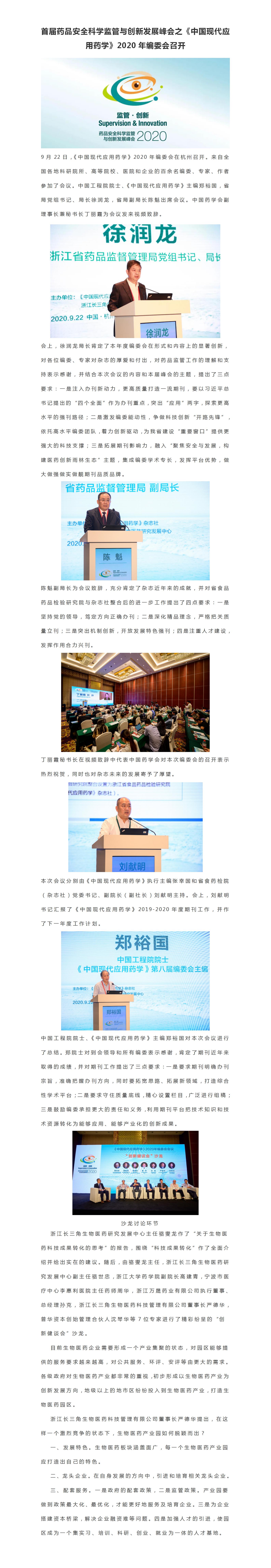 首屆藥品安全科學(xué)監(jiān)管與創(chuàng)新發(fā)展峰會(huì)之《中國(guó)現(xiàn)代應(yīng)用藥學(xué)》2020年編委會(huì)召開