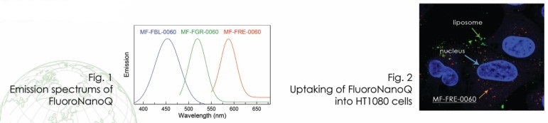 圖1.FluoroNanoQ發(fā)射波譜 圖2.FluoroNanoQ被HT1080細(xì)胞吸收